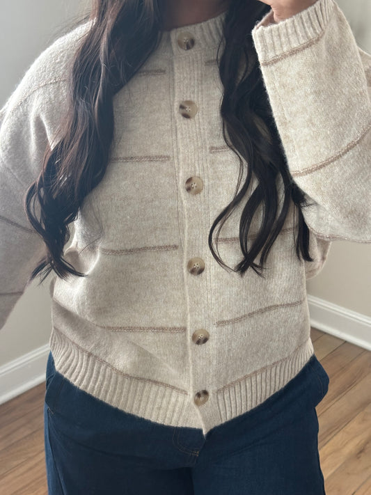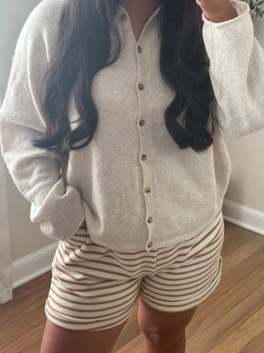 OATMEAL STRIPE KNIT CARDIGAN